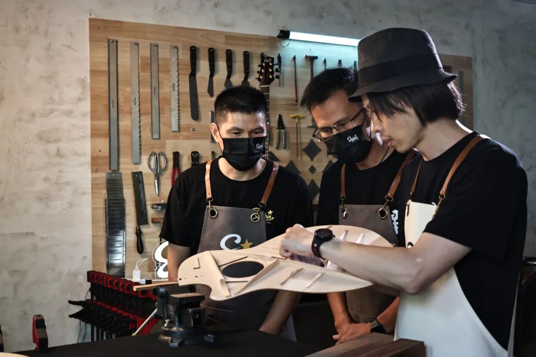 Ogino和藤尾真司的到訪不僅是一次簡單的參觀,更是一次深入的文化交流和技術指導。他們的到來為制琴師們提供了一個重要的學習機會,可以直接與國際級的制琴大師和設計師交流心得,這對于提升星臣吉他的制作工藝和設計理念有著非凡重要意義。期待在未來,我們能繼續(xù)深度合作,激發(fā)出更多創(chuàng)新的火花,共同推動星臣品牌煥發(fā)更加璀璨的光芒。